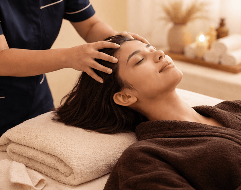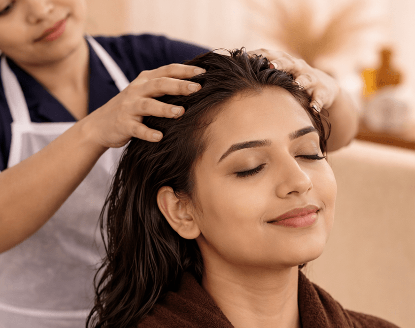 Our advanced Scalp Therapy in Bangalore is designed to address the root cause of hair fall, dandruff, dryness, and scalp sensitivity. Using Ayurvedic blends, therapeutic essential oils, and targeted massage techniques, this treatment detoxifies the scalp, improves circulation, and stimulates healthy follicle function. Regular scalp therapy supports stronger growth, reduced hair fall, and improved scalp balance over time.