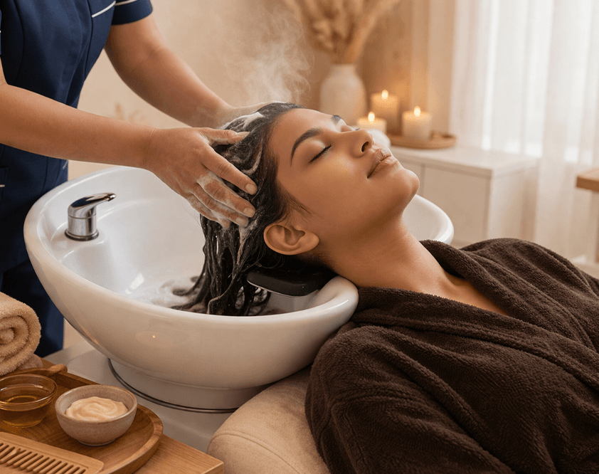 Our nourishing hair spa treatments support hair softness, moisture retention, and overall manageability. Infused with botanical oils and Ayurvedic herbs, these rituals condition the hair shaft, improve texture, and enhance shine while offering a deeply relaxing experience. Hair spa treatments in Bangalore are most effective when combined with regular scalp therapy for long-term results.