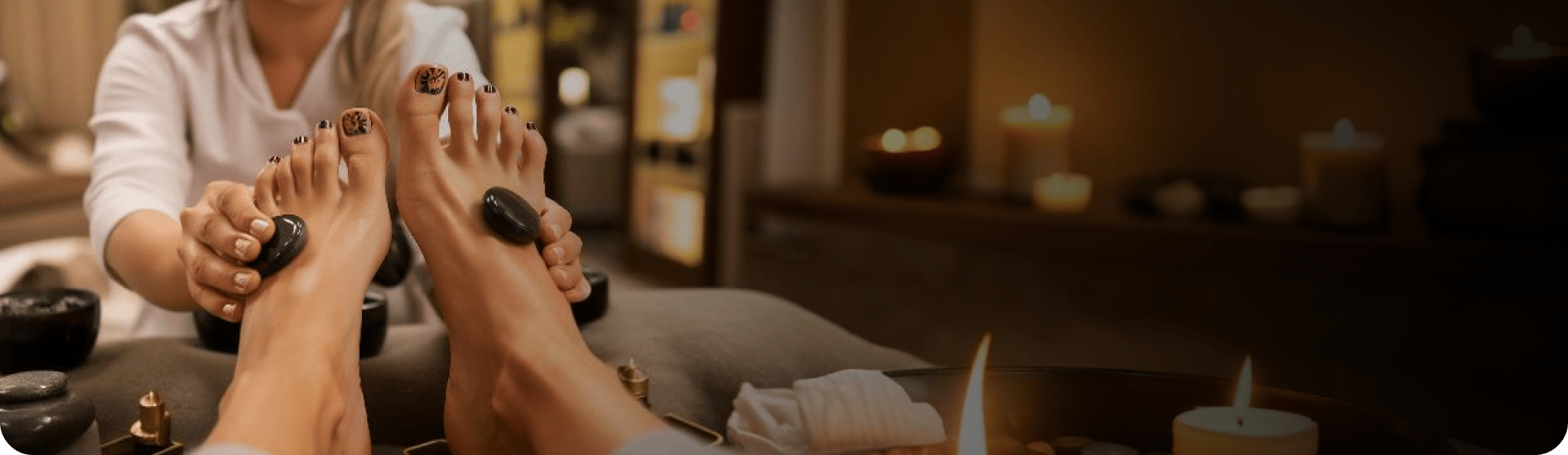 Surrender to the joy of being completely pampered as we create a tranquil sanctuary for your hands and feet. Immerse yourself in the warmth and luxury of our delicious six-oil blend soak as it enriches and nourishes your skin. Enjoy the refreshing sensation of our scrumptious sugar scrub and organic Jojoba oil as they exfoliate and moisturize your skin. Let our therapeutic clay mask and vitamin- infused shea butter give you a naturally healthy skin with a supple look and silky-soft feel. This premium session will end with a lush vegan nail do to glam your nails up.